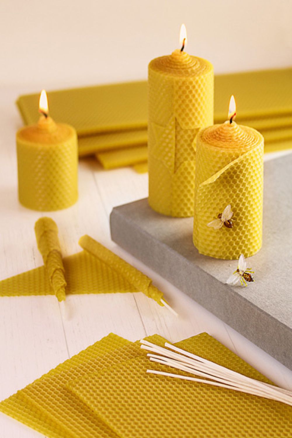 Jetzt können Sie wunderschöne Kerzen selbst drehen aus 100 % Bienenwachs-Wabenplatten, der Gestaltungsvielfalt sind keine Grenzen gesetzt.
