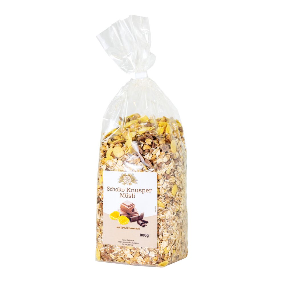 Schoko-Knusper-Müsli, mit 16% Schokolade.